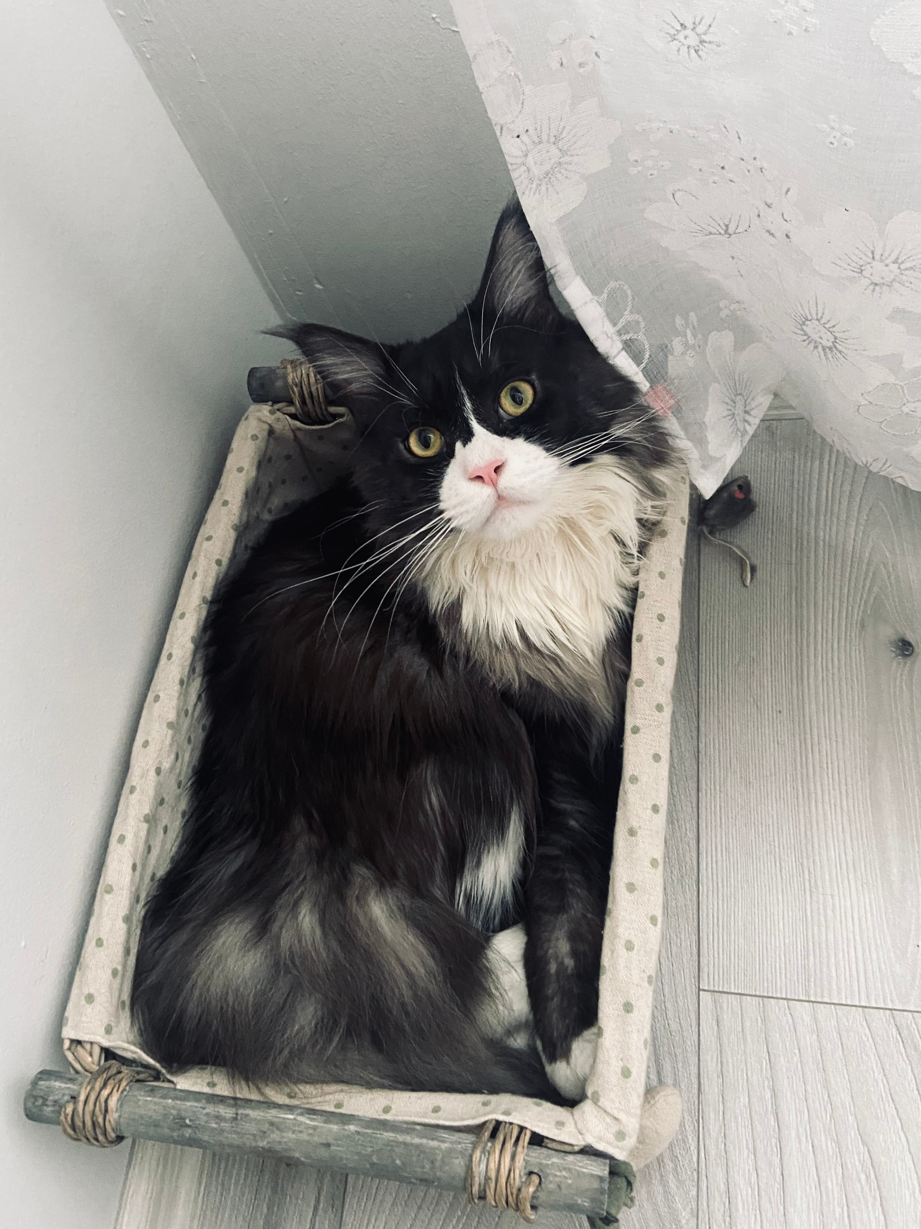 Orzeszek jest 2-letnim kotem rasy Maine Coon. Waży już 9 kg i jest wielką przytulanką. Jego imię wzięło się od jego orzechowego koloru oczu. Dla mnie jest najpiękniejszym kotem, może zostanie tez najpiękniejszym kotem we Wrocławiu? ☺️