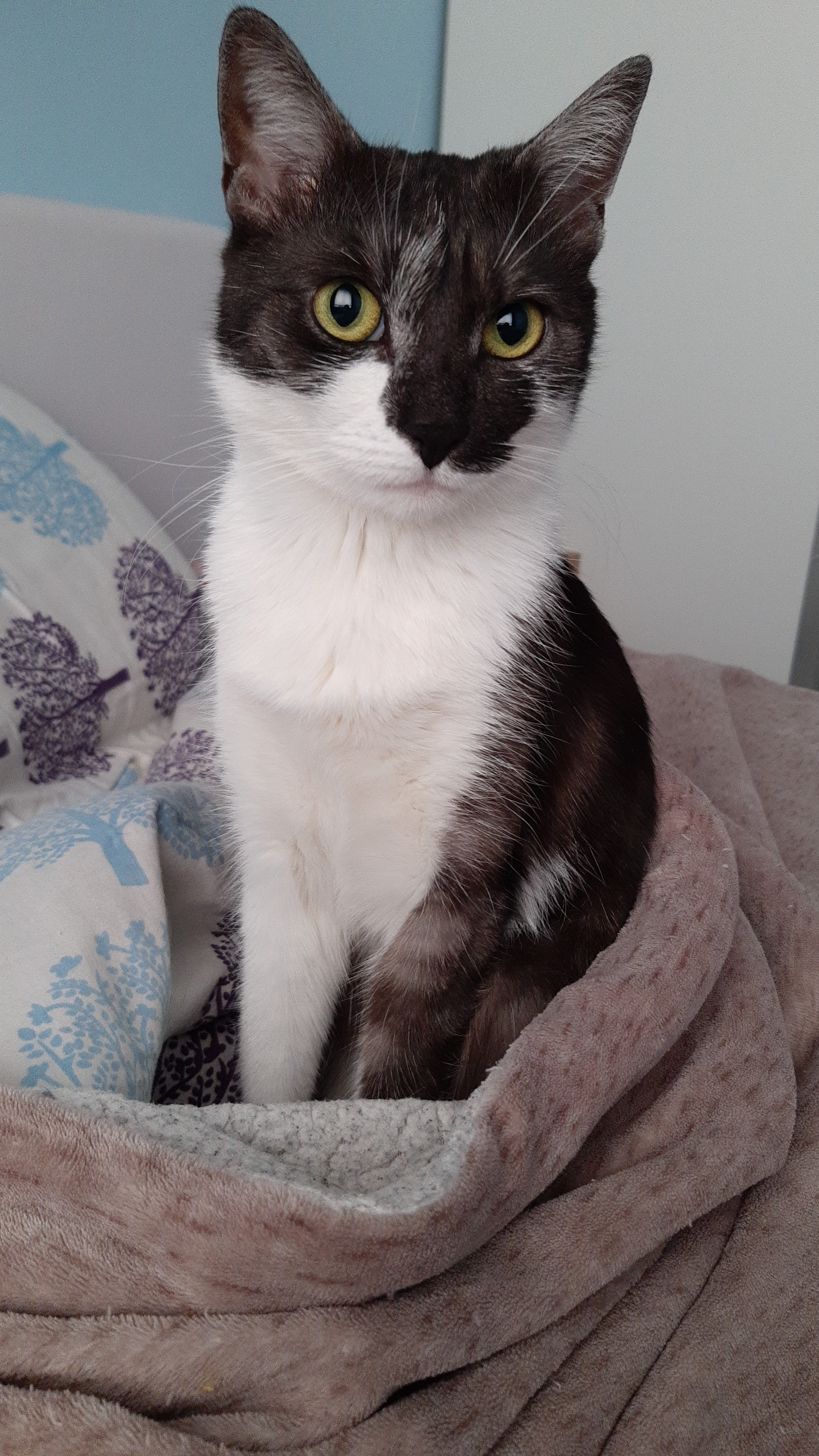 Floki jest 5 letnią kotką - adopciakiem z jednej dolnośląskich wsi. To bardzo rozrywkowa kotka, która najchętniej całe dnie przesiadywała na balkonie obserwując przyrodę. Cały jej urok tkwi w pięknie jej oczu, które zdobią zielone obwódki.