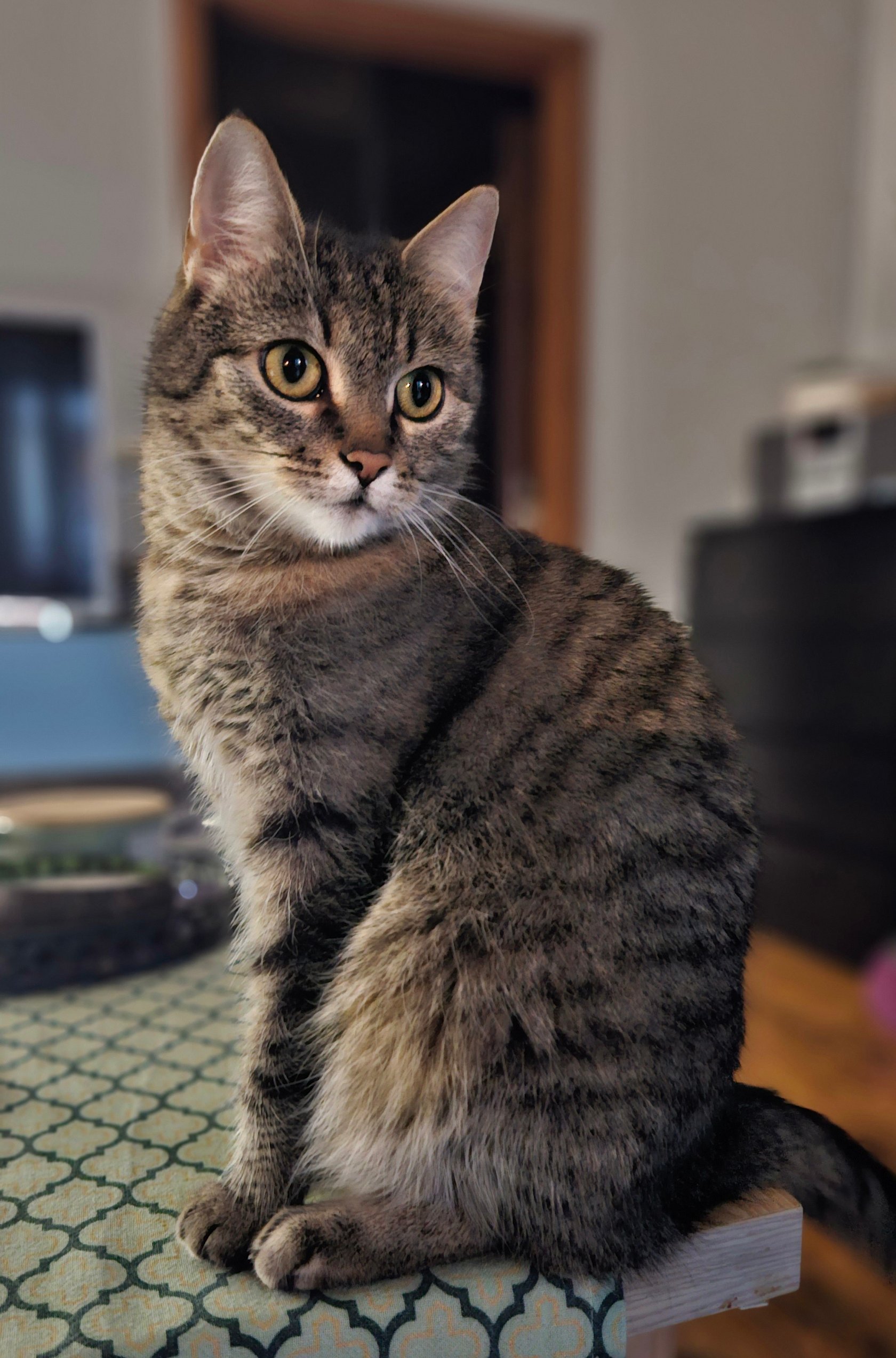 Marlenka ma 8 lat i jest typowym blokersem wrocławskim, codziennie wychodzi z domu, łazi swoimi ścieżkami po osiedlu i obserwuje życie sąsiadów z balkonu. Jako malutki kotek znaleziona w krzakach i uratowana, przygarnęłam kropka. Dorosła i teraz większość czasu spędza na spaniu, jedzeniu i spaniu, no i eksplorowaniu osiedla. Ciekawska, jednak niedotykalska, a jako że jest kotem wychodzącym, budzi standardowo o 4 rano, bo musi wyjść na dzielnię. To ona tu rządzi. Bez niej dom byłby pusty.