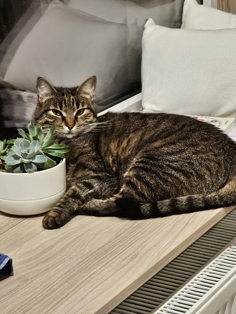 Ryśka jest bardzo kulturalnym i inteligentnym kotem. Nie miauczy, ale piszczy jak mała ptaszyna. Bardzo ciekawa i wesoła kotka. Jej ulubionym miejscem jest parapet nad kaloryferem.