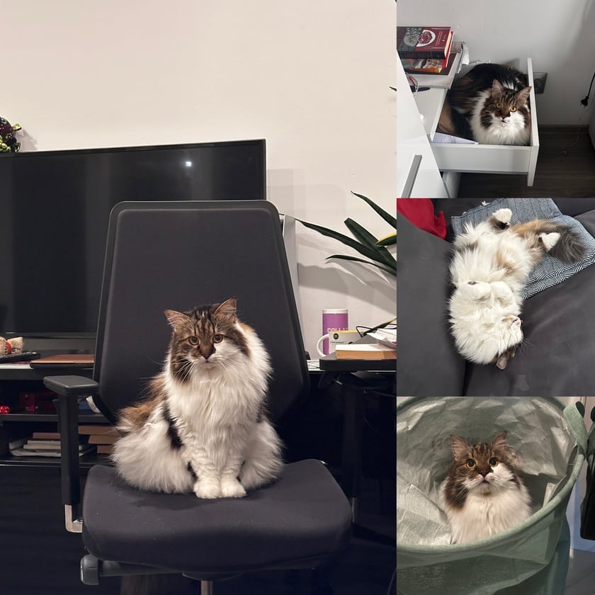 Cześć! Mam na imię Bonifacy, ale moi ludzcy przyjaciele nazywają mnie po prostu Bony. Szczerze powiedziawszy, uważam się za dosyć ważną osobistość w tym domu, bo mam najbardziej puszystą i miękką sierść w całej okolicy! Moje życie to ciągła przyjemność. Zaczynam dzień od długiego i zamyślonego patrzenia na moją miskę z jedzeniem, dopóki mama nie zrozumie, że czas podać mi coś smakowitego. Świadomie mruczę, kiedy przynosi mi moje ulubione przysmaki, a potem starannie czyszczę wąsy. Następnie jest mój ulubiony czas – drzemka. Wybieram najbardziej słoneczne miejsce w domu, a czasem podkradam się do fotela taty. Ach, to fotel… Takie wygodne, takie miękkie! Mogę spać tam godzinami, marząc o idealnym życiu kota, którym się zajmuję. Kiedy się budzę, rozciągam się i leniwie idę do taty. Tata zawsze jest gotów pogłaskać mój brzuch. Wie, jak bardzo to lubię! Jestem od tego tak zadowolony, że czasami, jeśli wszystko jest bardzo dobre, nawet nie mogę powstrzymać małego przyspieszonego trzepotania moich wąsów. A po kolacji mamy jej ręce wiedzą drogę do moich uszu i pleców. Jej delikatność przemienia mnie z prawdziwego drapieżnika (kiedy gonię moje zabawkowe myszy) w rozluźnioną kulkę puszystej radości. Ogólnie rzecz biorąc, powiem wam, życie kota jest wspaniałe. Jeśli kiedykolwiek zostaniesz kotem, zgłoś się do mnie po poradę! A teraz, jeśli wybaczycie, czas na moją trzecią drzemkę w ciągu dnia nie będzie czekać!