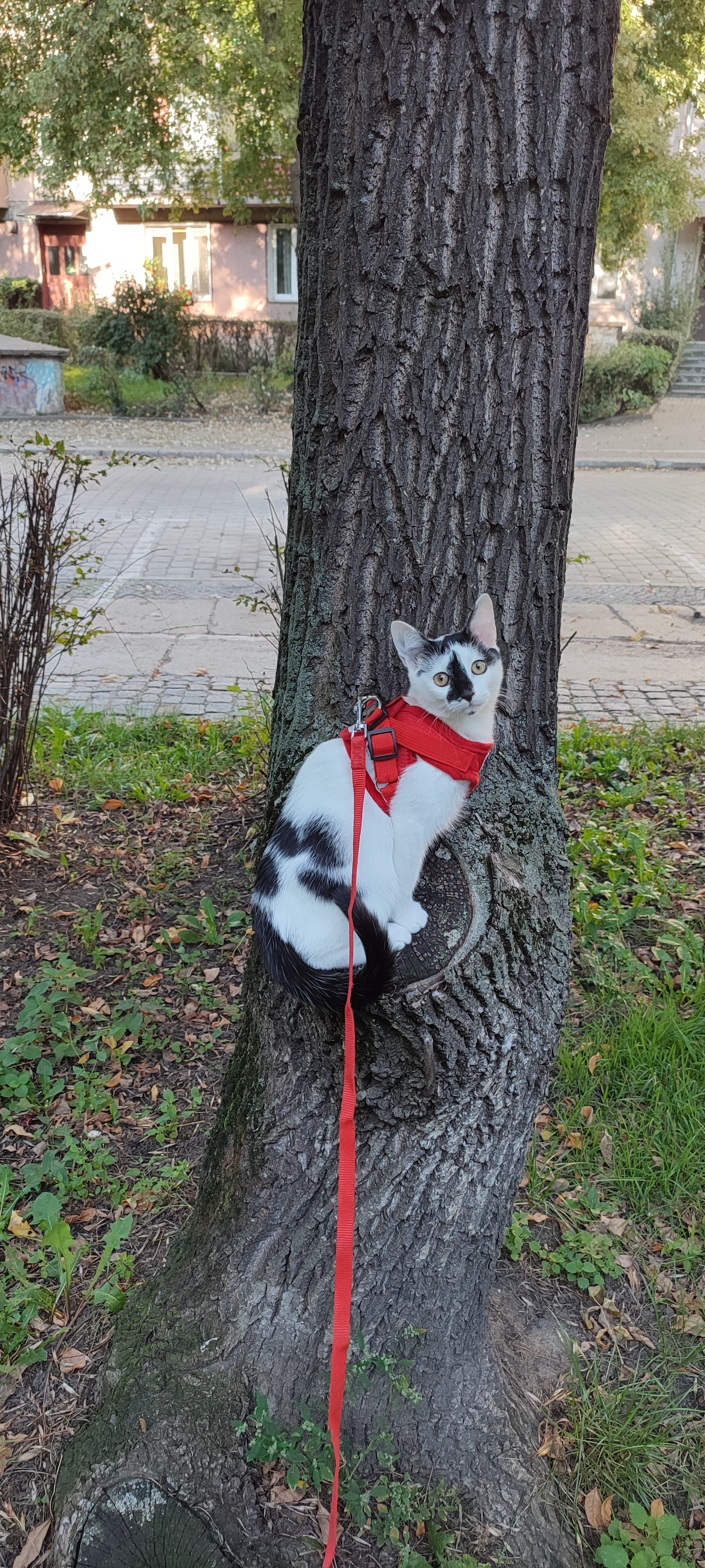 Aktualnie 8-miesieczna kotka, znaleziona na ulicy we Wrocławiu w wieku 6 tygodni. Uwielbia spacery na smyczy po wrocławskich parkach lub na barkach swojego niewolnika.
