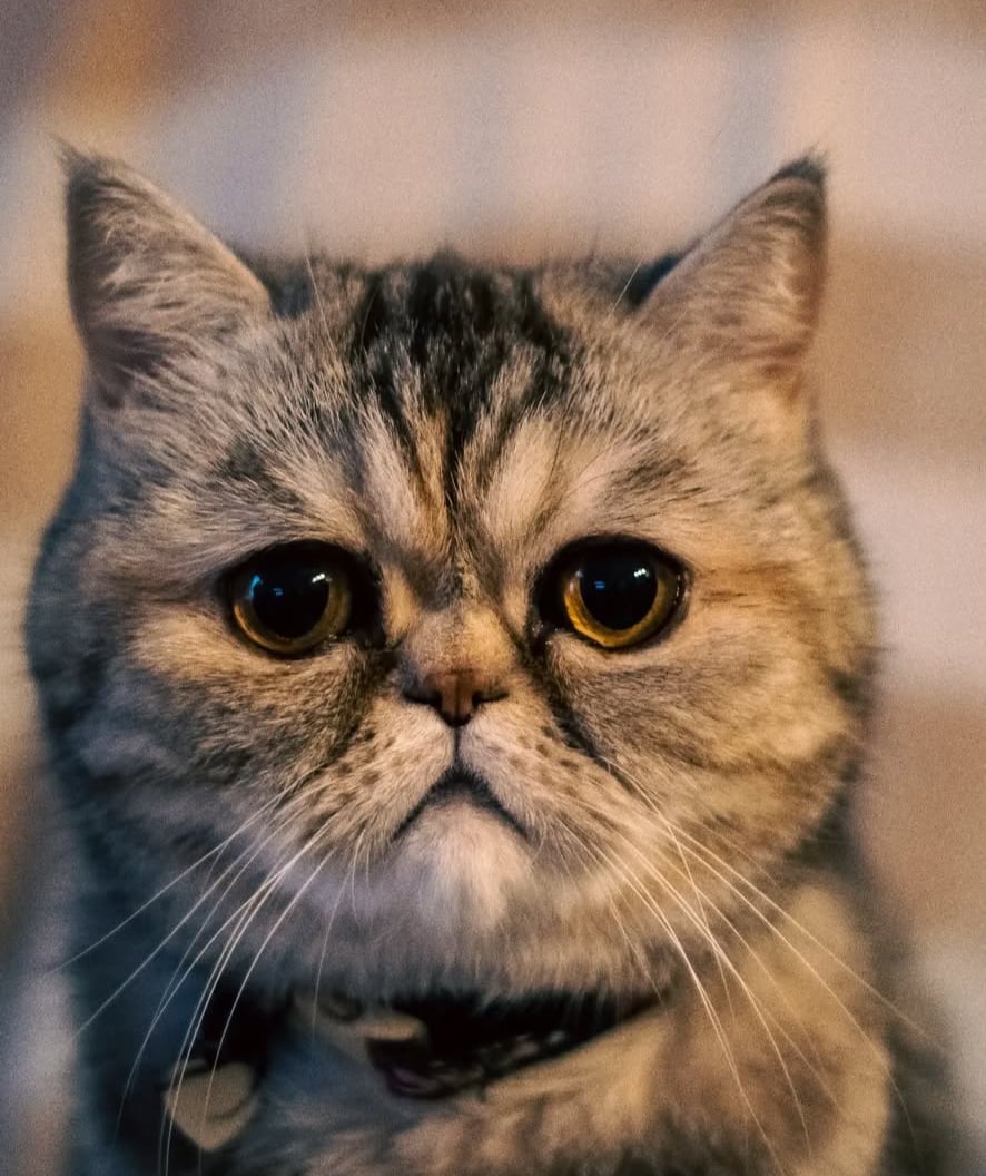 Kotka egzotyczna Frida uwielbia leżenie na dokumentach i w ciasnych kartonach, lubi głaskanie pilotem i picie wody prosto z kranu. Charakterna dama o wielkim sercu.