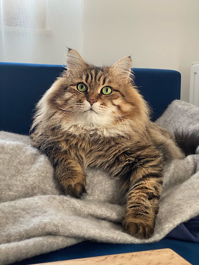 Cześć, jestem Dazzle! Zostałem nazwany na cześć postaci z gry Dota 2. Mam 7 lat, jestem dużym i silnym syberyjskim kotem. Uwielbiam smakołyki, spanie i drapanie po brzuszku. Jestem bardzo przyjazny i ciekawski!