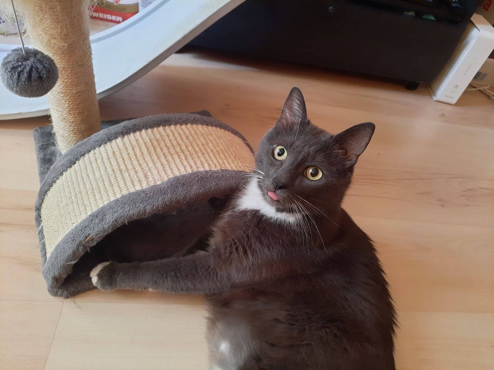 To jest bardzo #ludzkij # kot,jaki śpi w łóżku w nocy ,jak człowiek, a w dzień się bawi. Boksuje się z mężem codziennie, jest sportowiec