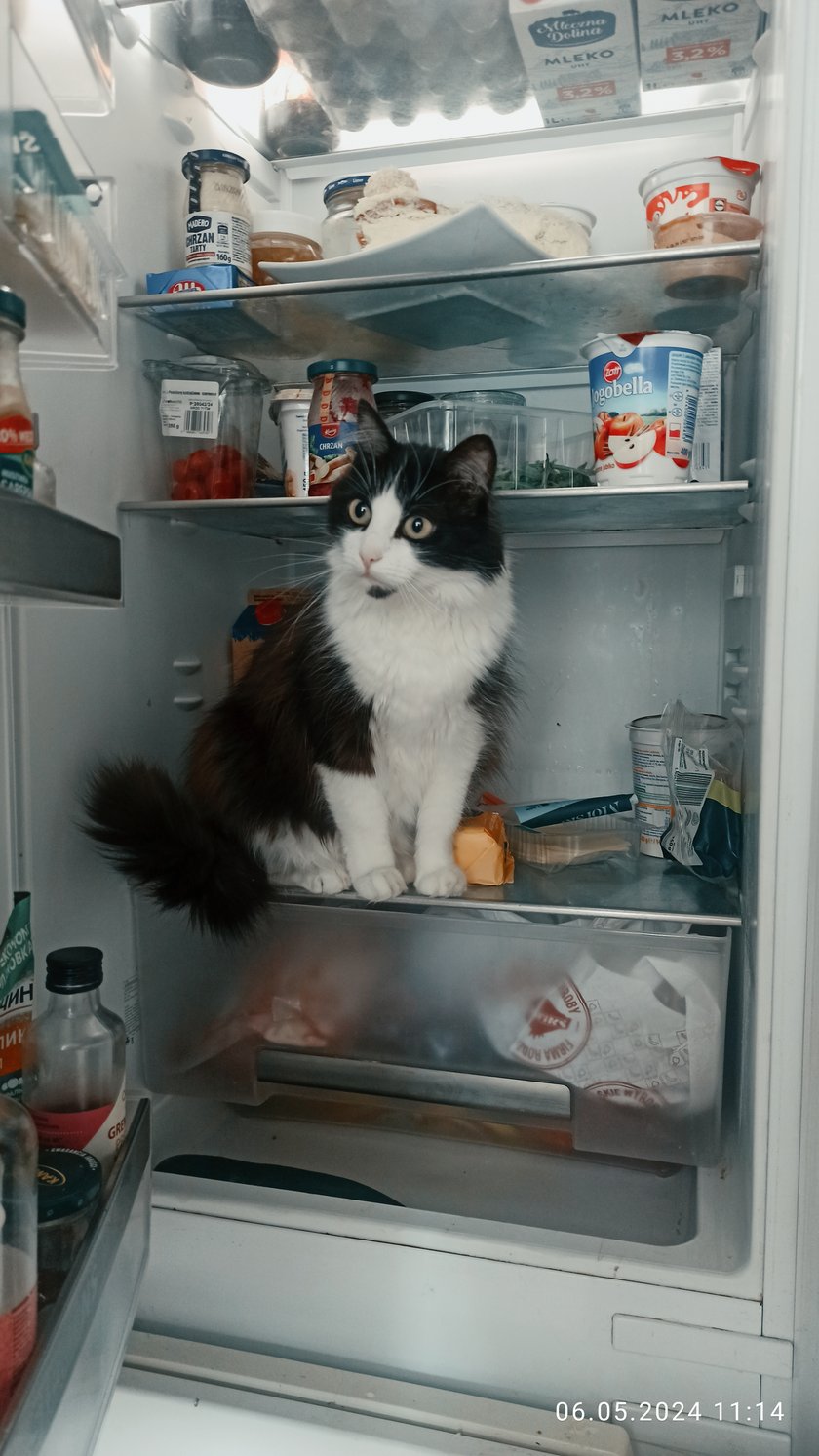 To urocza kotka o puszystym, biało-czarnym futerku i dużych, ciekawskich oczach. Jej wyjątkowy urok podkreśla kontrastowe umaszczenie oraz figlarny charakter – uwielbia odkrywać nowe miejsca, czego dowodem jest ta zabawna przygoda w lodówce. To mała odkrywczyni, która potrafi rozbawić i skraść serce każdego!