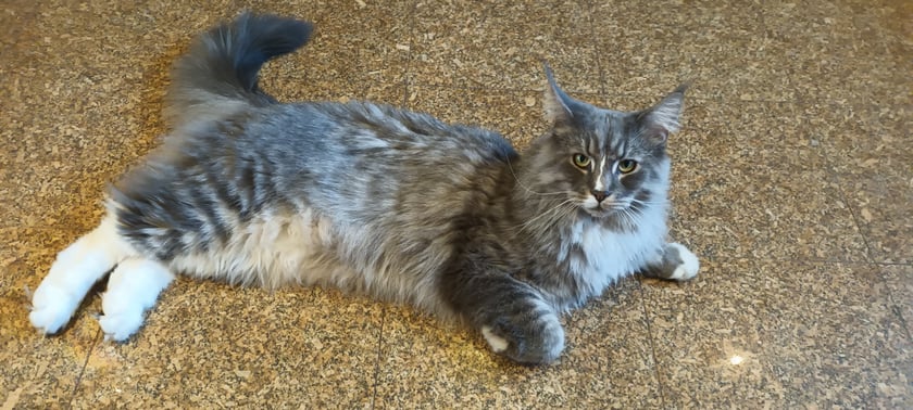 Maksio srebro szary kocur o wspanialym charakterze, 27 lutego miał urodzinki skończył 3 lata.Prawdziwy słodziak który uczestniczy we wszystkim co się dzieje w domu, bardzo ciekawski i inteligentny, pomrukuje i wydaje dźwięki przypominające świergotanie, domownik.