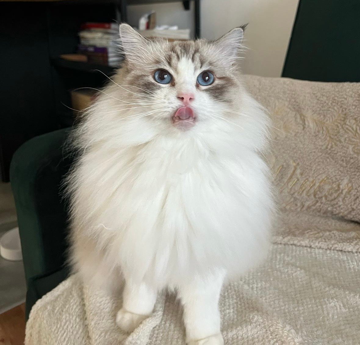 Puchata Kiara rasy Ragdoll, po 5 latach w hodowli od pół roku ma nowy szczęśliwy domek. Jest bardzo towarzyska, uwielbia przytulanie, zabawę maskotkami i dobre jedzonko :)