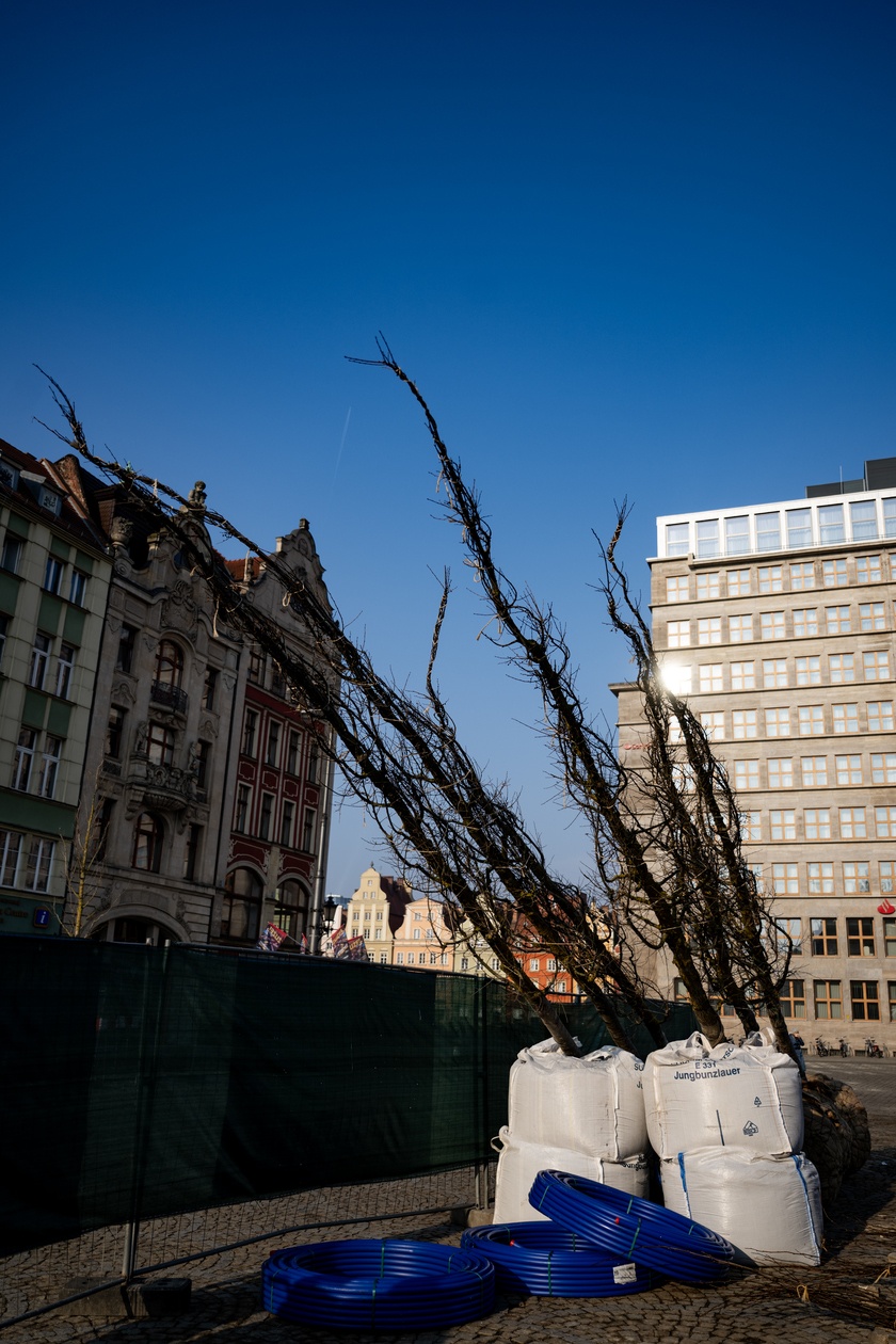 Kolejne drzewa już dotarły na Rynek we Wrocławiu