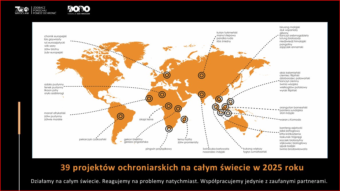 7 / 17 Wróć do artykułu Ponad 1 mln złotych dla zwierząt zagrożonych wyginięciem. Rekordowa kwota zebrana przez wrocławskie zoo i DODO Ponad 1 mln złotych dla zwierząt zagrożonych wyginięciem. Rekordowa kwota zebrana przez wrocławskie zoo i DODO materiały prasowe Przejdź do poprzedniego zdjęcia. Poprzednie Następne Przejdź do kolejnego zdjęcia. Organizacje wspierane przez zoo i DODO działają na całym świecie