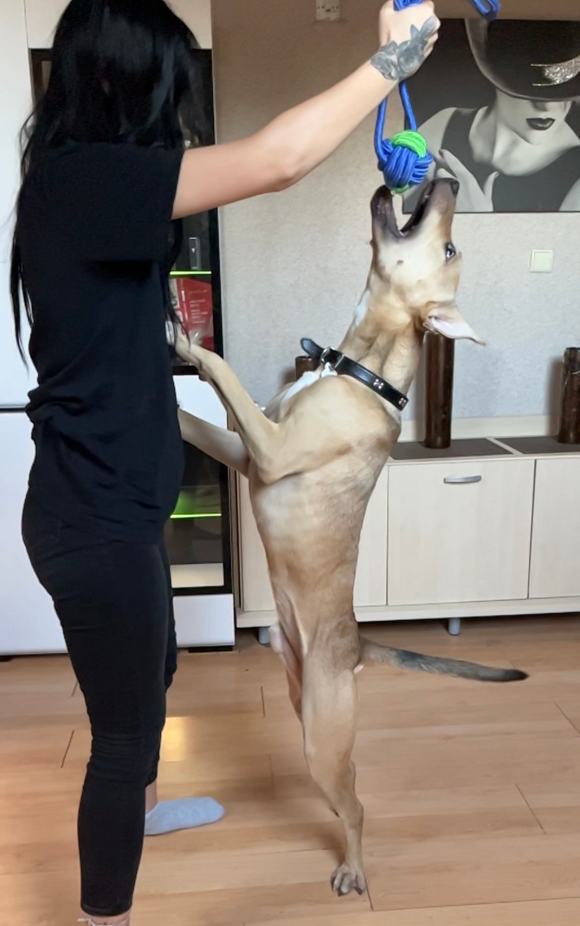 Tino to adopciak, mix amstaffa i prawdopodobnie owczarka belgijskiego, pełen energii, inteligentny, pocieszny, zabawny psiak