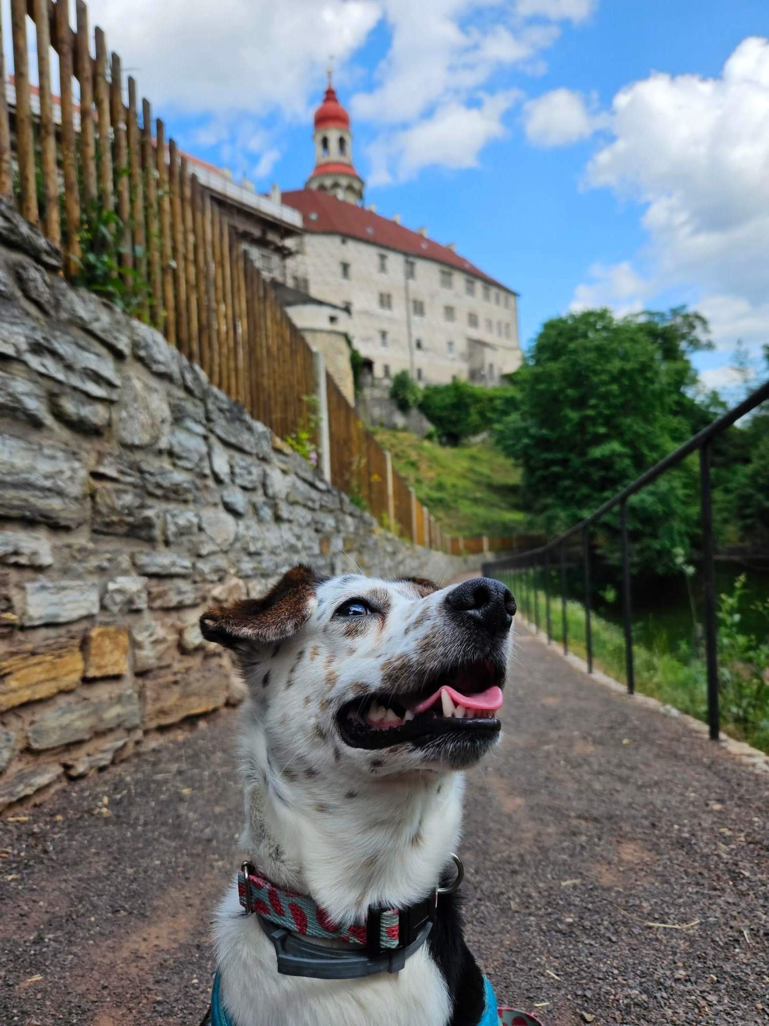 Bingo to 3 letni piesek, który bardzo lubi podróże i wspinaczkę po górach. Nie straszne mu nawet wyjazdy zagraniczne - na zdjęciu podróż do czeskiego Nachodu i zdobywanie zamku :)