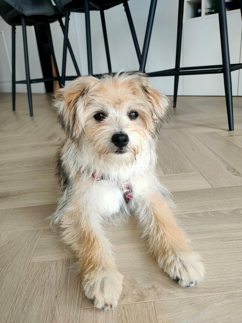 Chrupka to pięciomiesięczny mieszaniec. Została adoptowana z wrocławskiego schroniska po tym jak z ósemką rodzeństwa została porzucona w kartonie. Na szczęście smutny początek życia nie wpłynął na jej osobowość - uwielbia poznawać nowych ludzi i pieski :) Chociaż imię wybraliśmy dla niej długo przed adopcją, okazało się ono strzałem w dziesiątkę - psinka uwielbia chrupać pyszne przysmaki ale i nogi właścicieli - jak na szczeniaka przystało :)