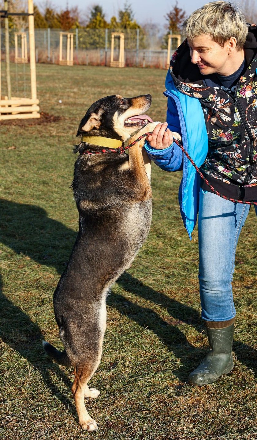 Suczka, ok. 2-letnia. Bardzo miła, wylewna, pełna pozytywnych emocji. Kontaktowa i ufna w stosunku do ludzi.