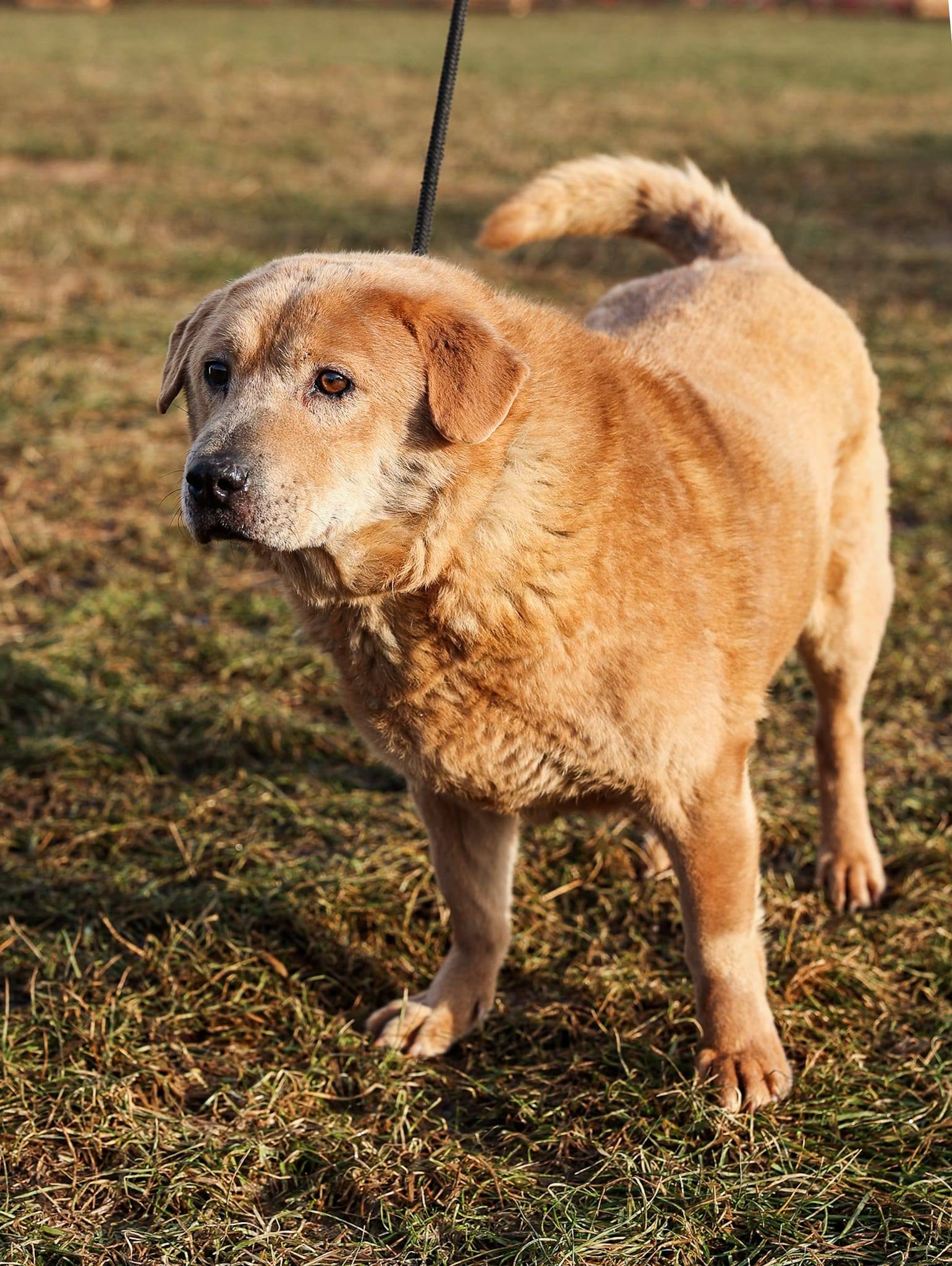 Pies, ok. 9 lat. Jest spokojny i łagodny. Lubi jedzonko i spanie. Ma sporą nadwagę. Cieszy się na widok człowieka.