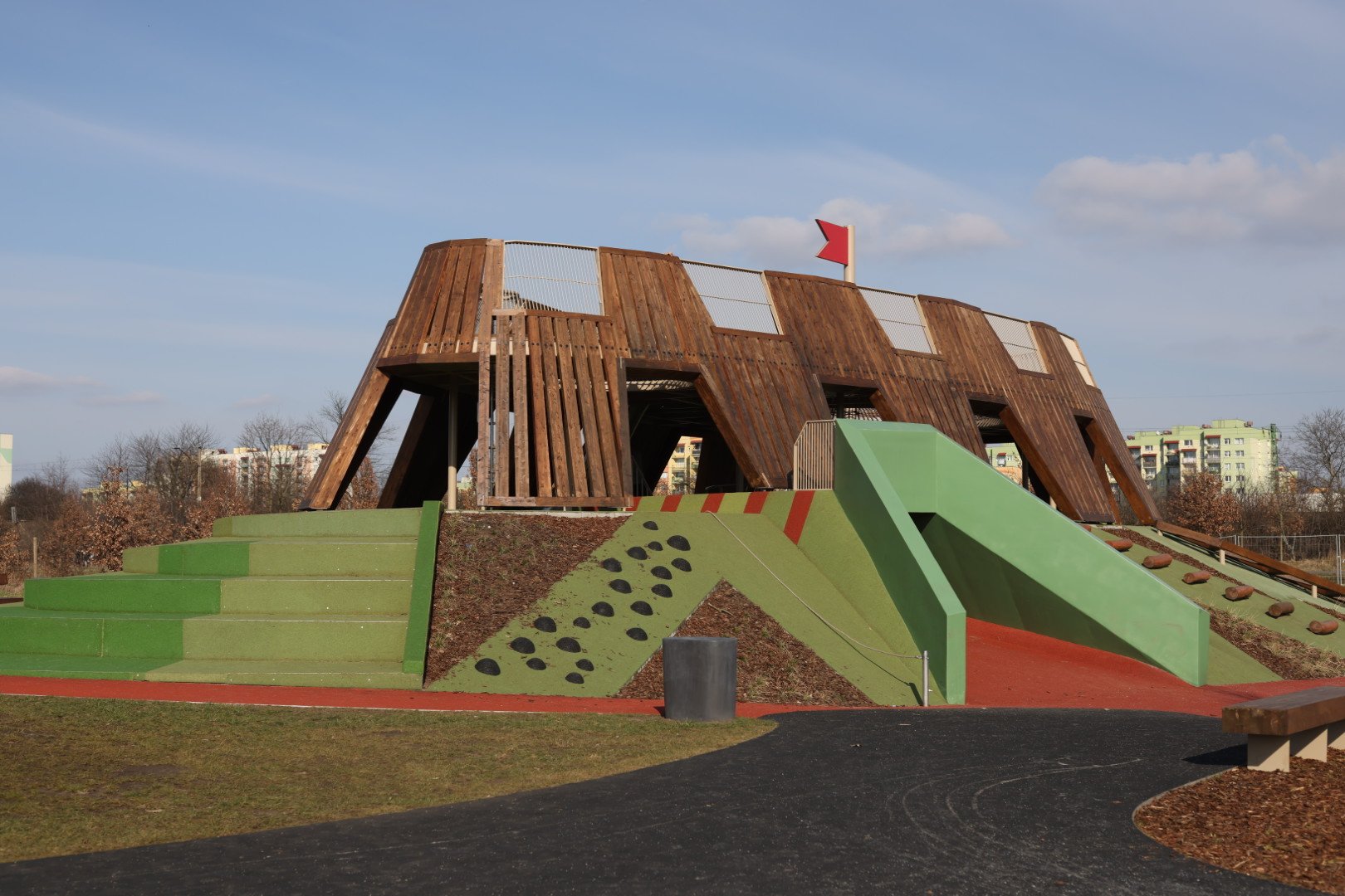 Na zdjęciu ?Średniowieczny Wrocław? w parku Tysiąclecia, czyli wyjątkowy plac zabaw na zachodzie Wrocławia - 28 lutego 2023 r.