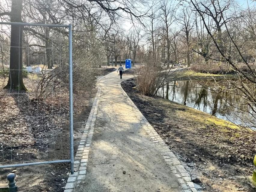 W Parku Południowym trwają prace remontowe przy ścieżkach prowadzących do tarasu będącym pozostałością po pałacu Ludwiga Landsberga