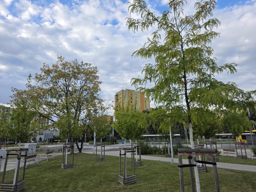 Drzewa rosnące na pętli tramwajowej na Nowym Dworze tworzą niewielki park. Posadzono je podczas budowy TAT na Nowy Dwór.