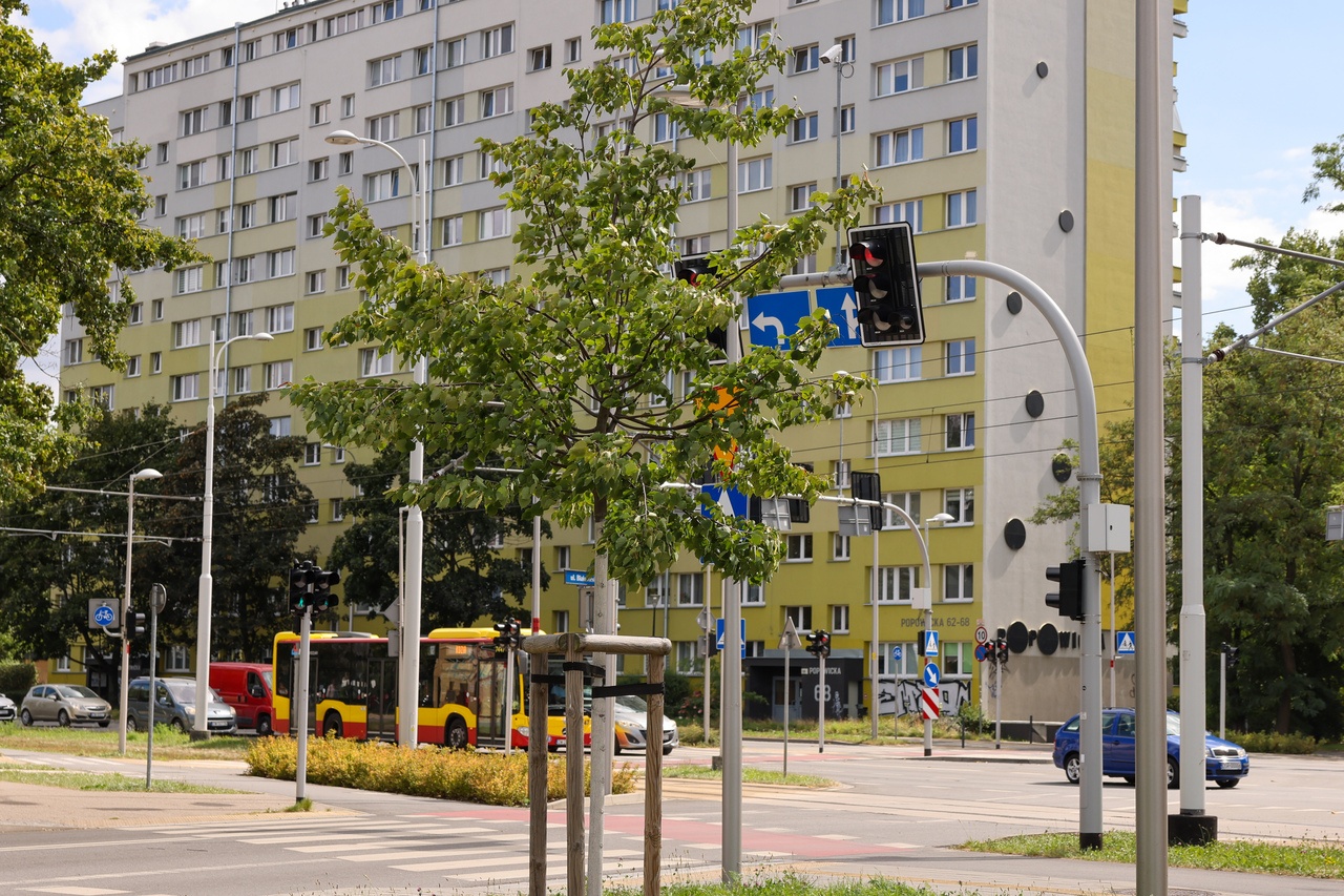 Jedna z lip posadzonych przy ul. Popowickiej, podczas budowy linii tramwajowej, ma już ponad trzy metry i dalej rośnie.